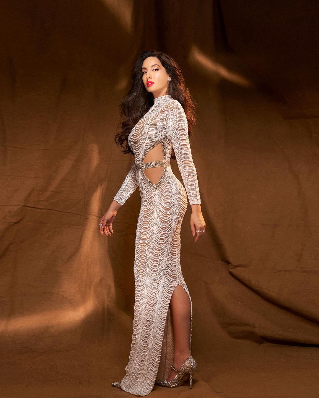 Nora Fatehi looks fabulous in the silver-white cutout dress