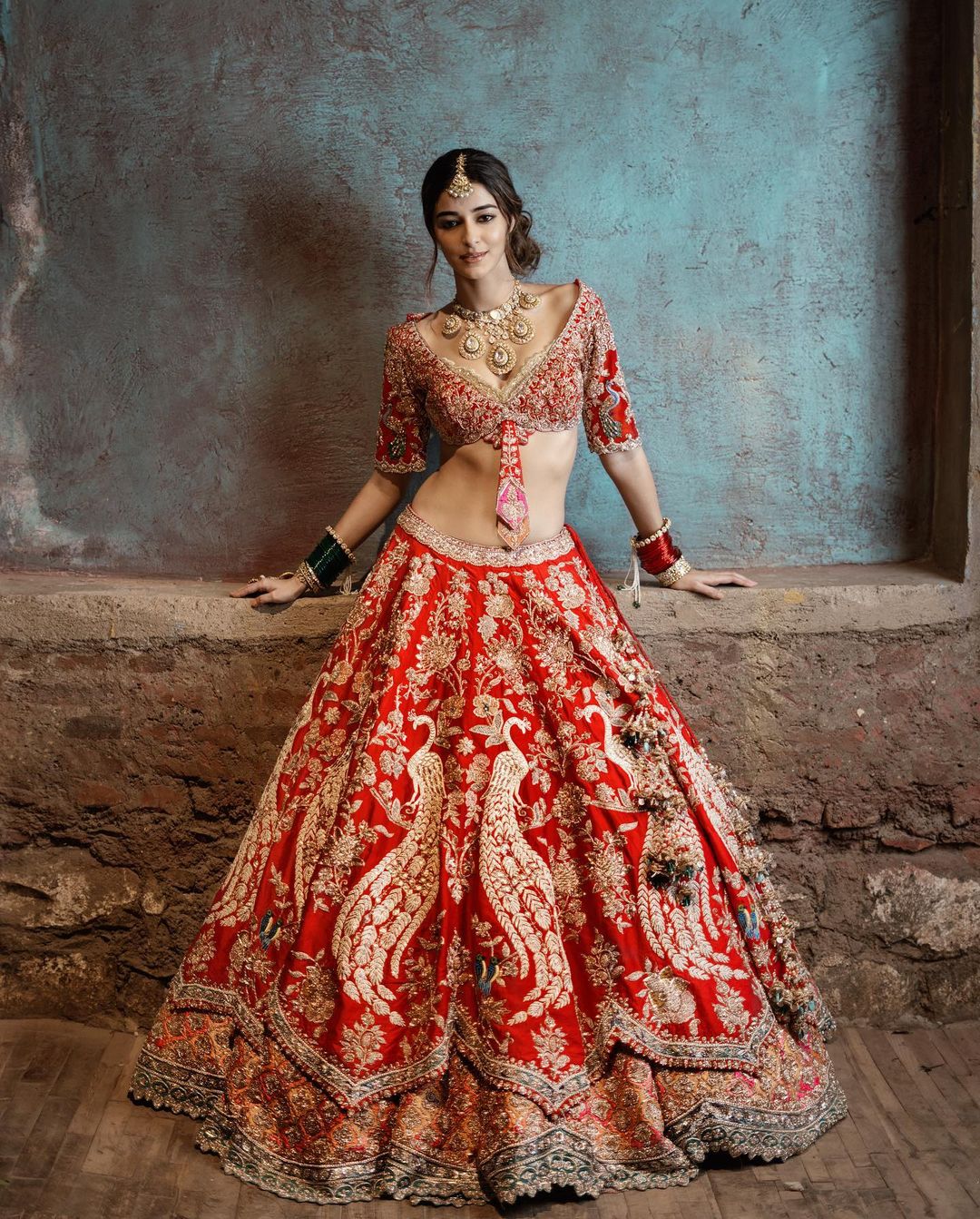 Ananya Panday gives bridal feels in the ornate red lehenga.