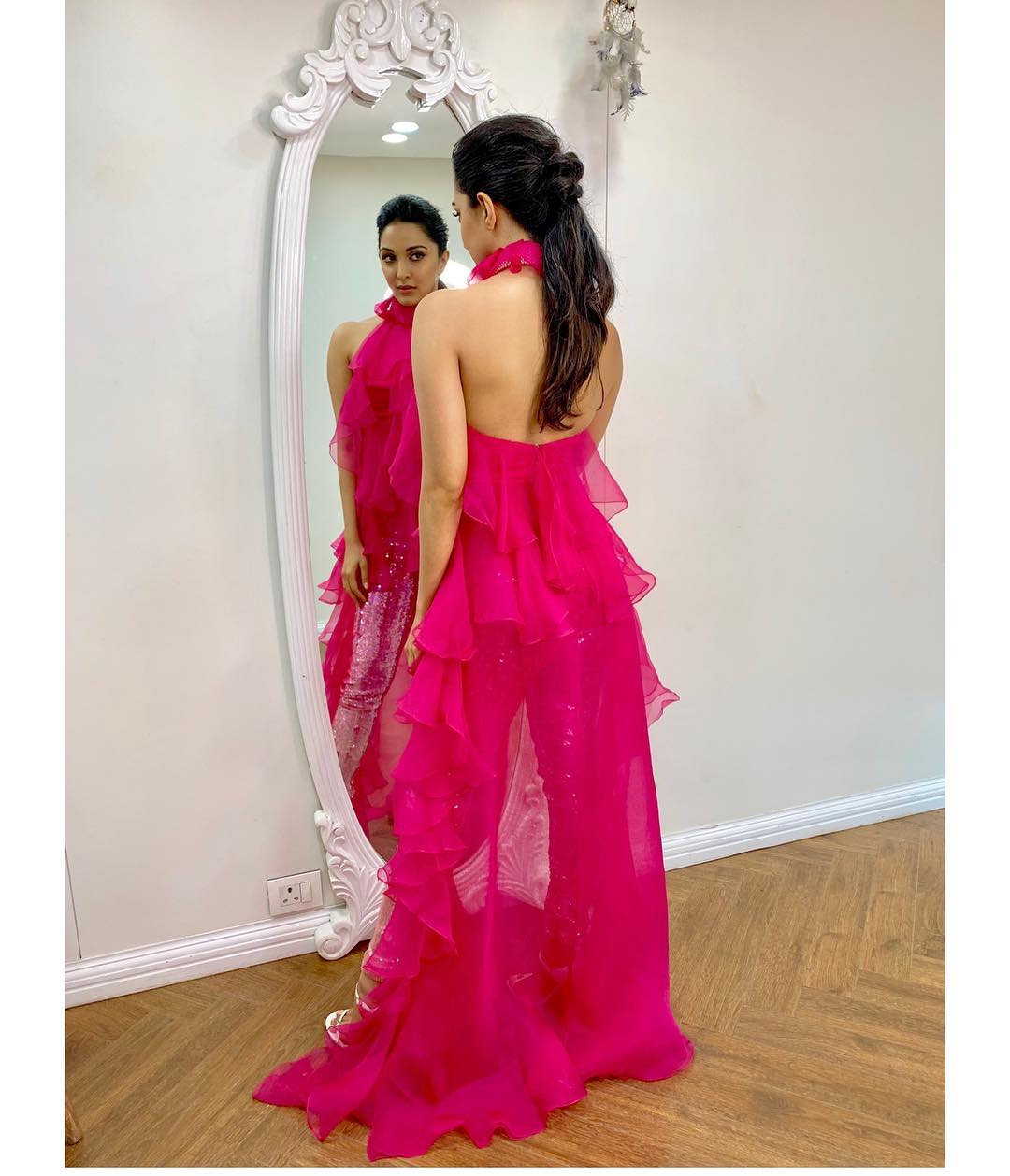 Kiara Advani looks stunning in a vibrant pink backless dress
