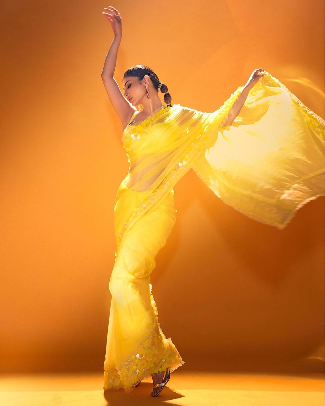 Mouni Roy flaunts her curves in the shimmering yellow saree