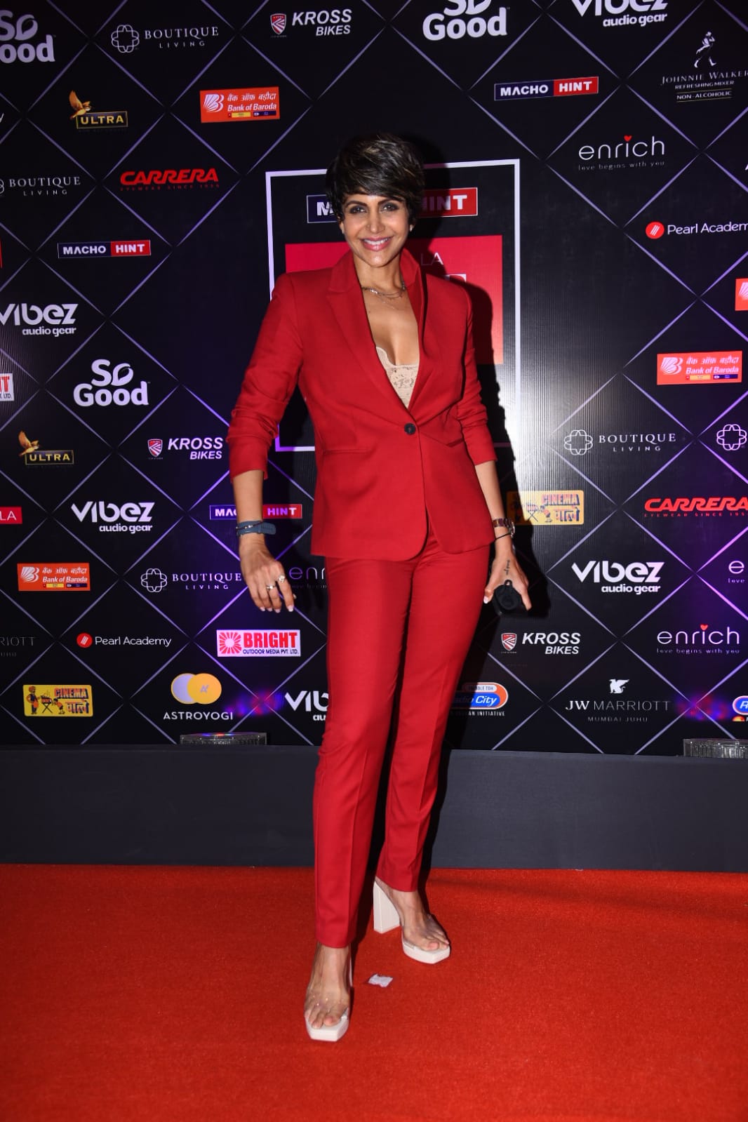 Mandira Bedi looks uber chic in a red pantsuit at the Pinkvilla Style Icons Awards
