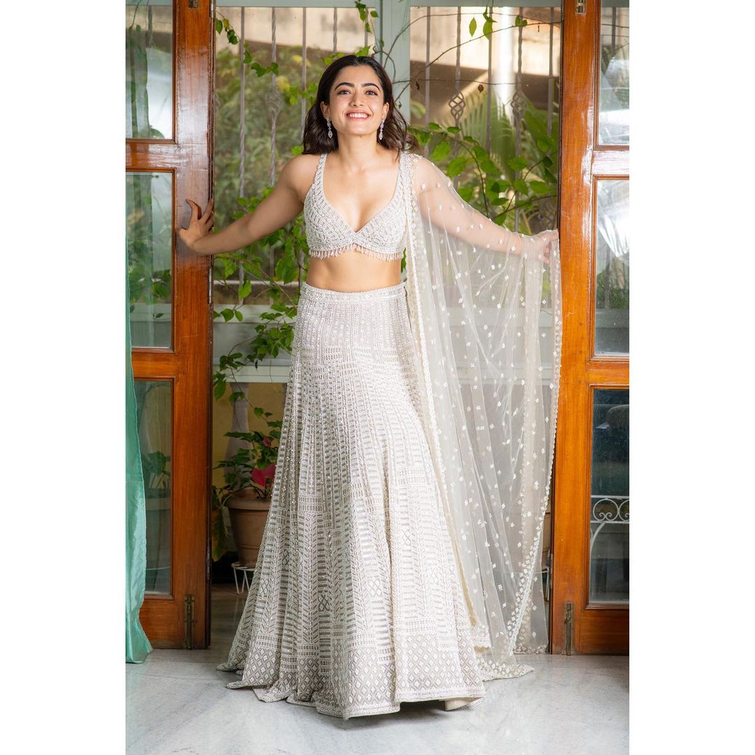 Rashmika Mandanna is shining bright in a white and silver lehenga