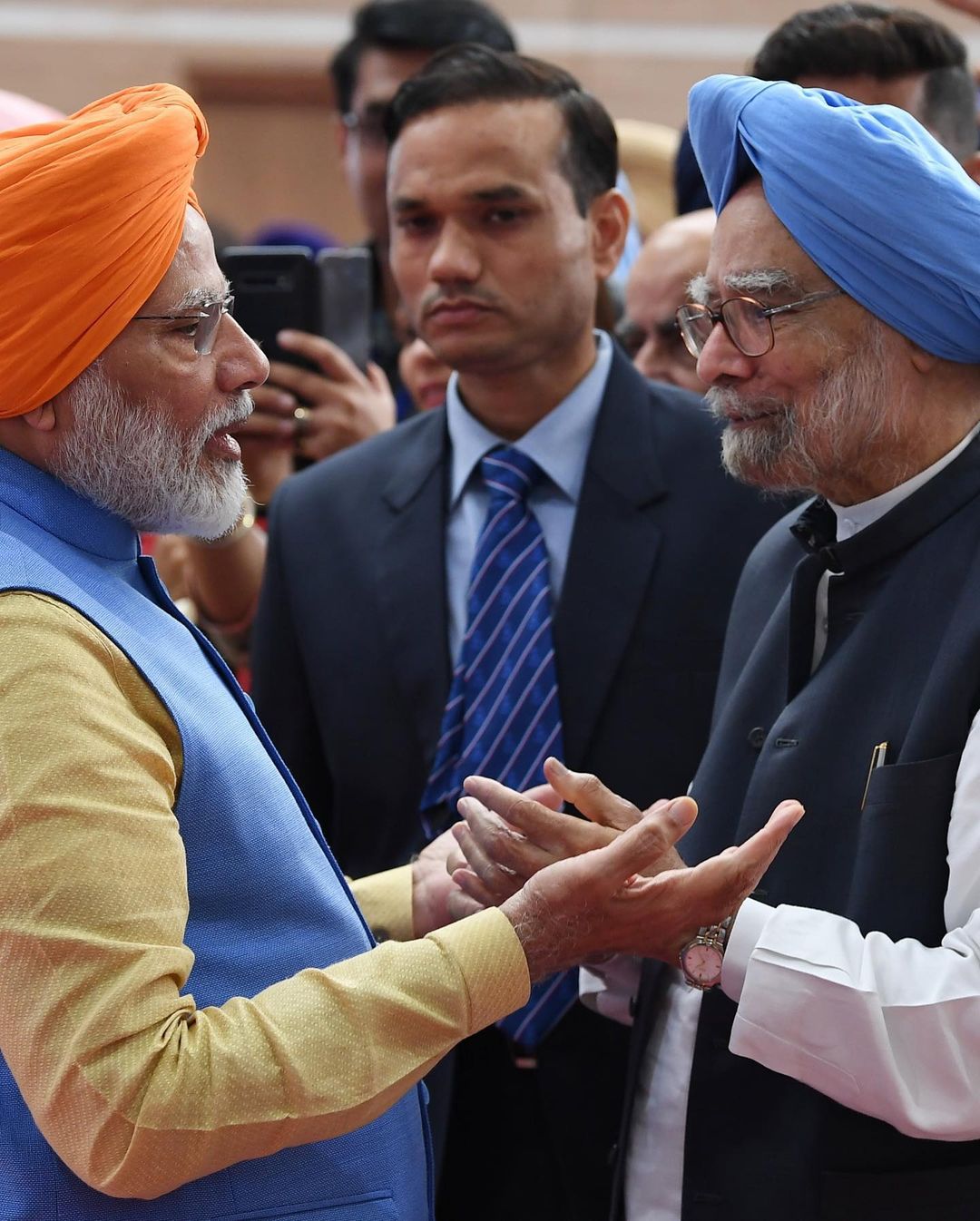 PM Modi with former prime minister Manmohan Singh during the inauguration of Kartarpur corridor in Punjab