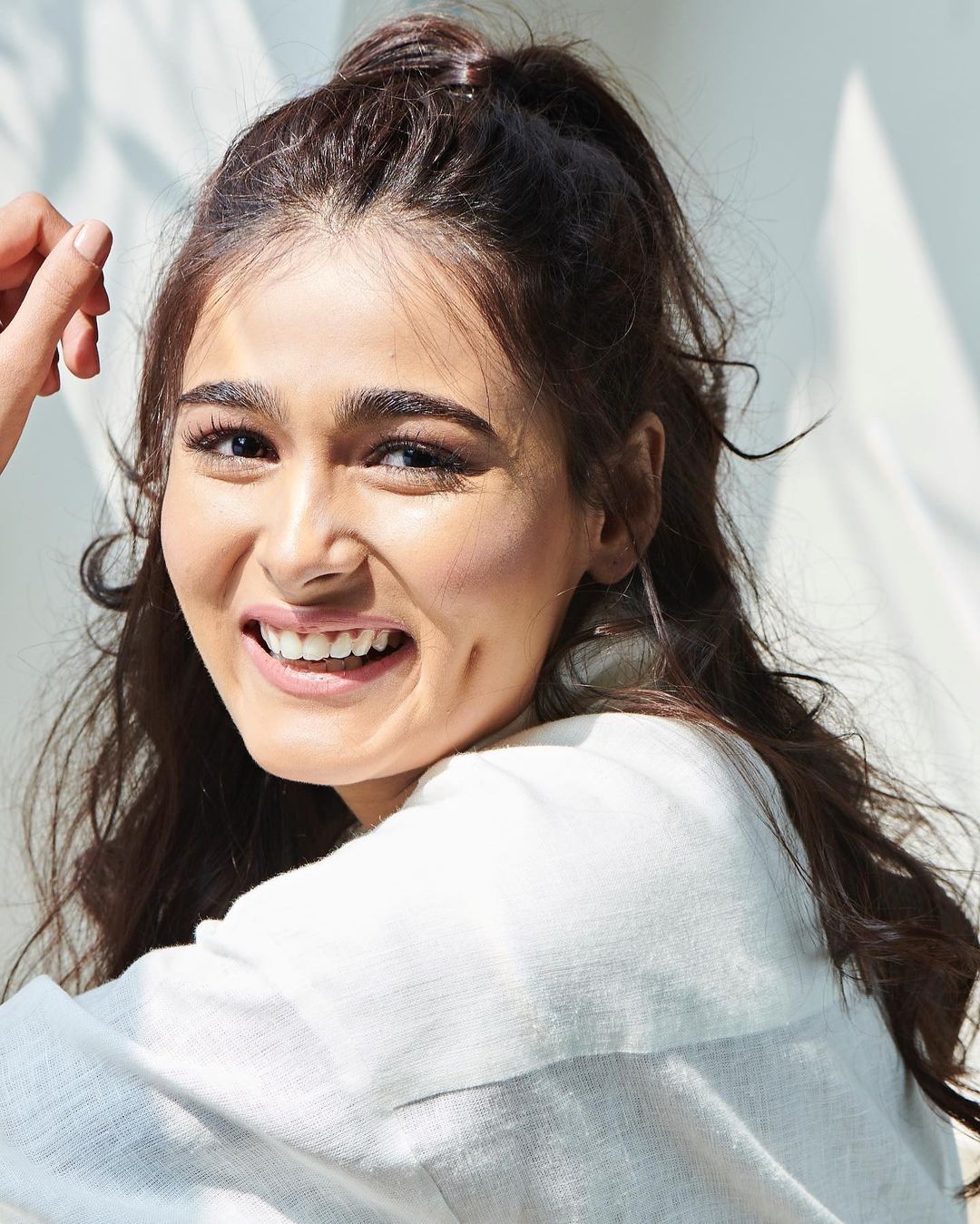 Sai Tamhankar strikes a bold pose as she dons a black and white dress at the beach