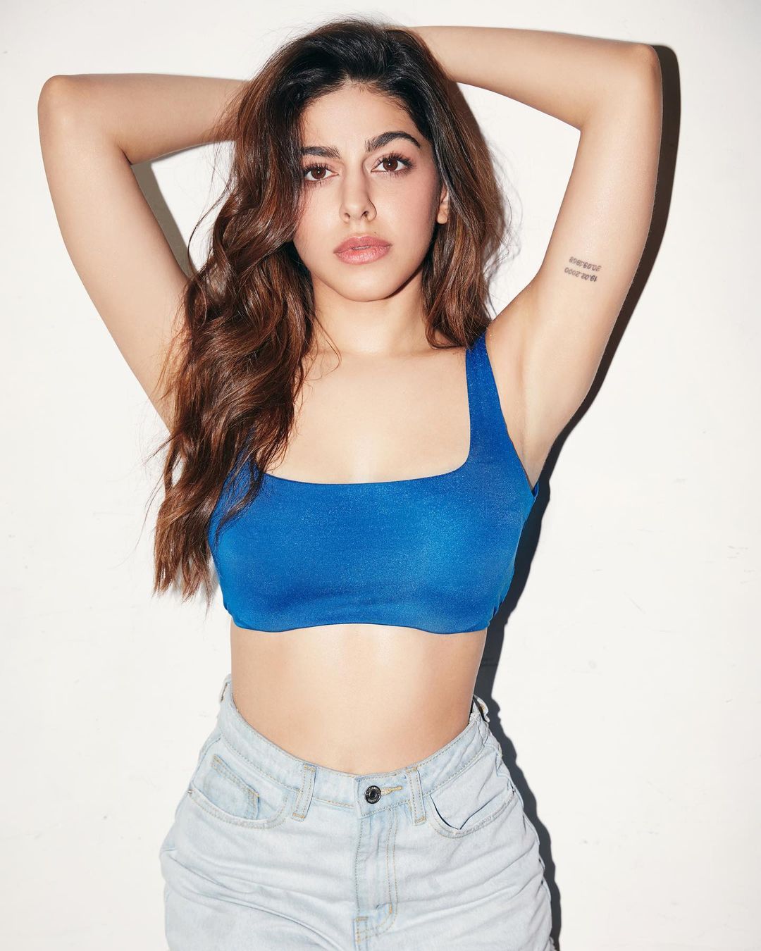 Alaya F displays her cleavage in the ensemble with a plunging neckline