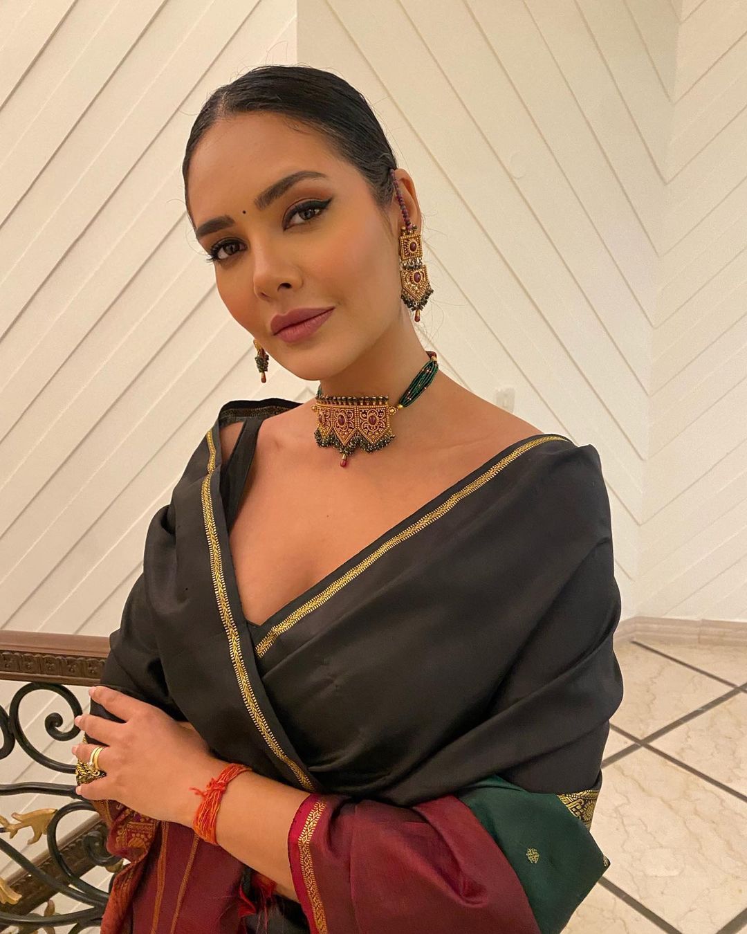 Esha Gupta is a picture of grace in the black silk saree