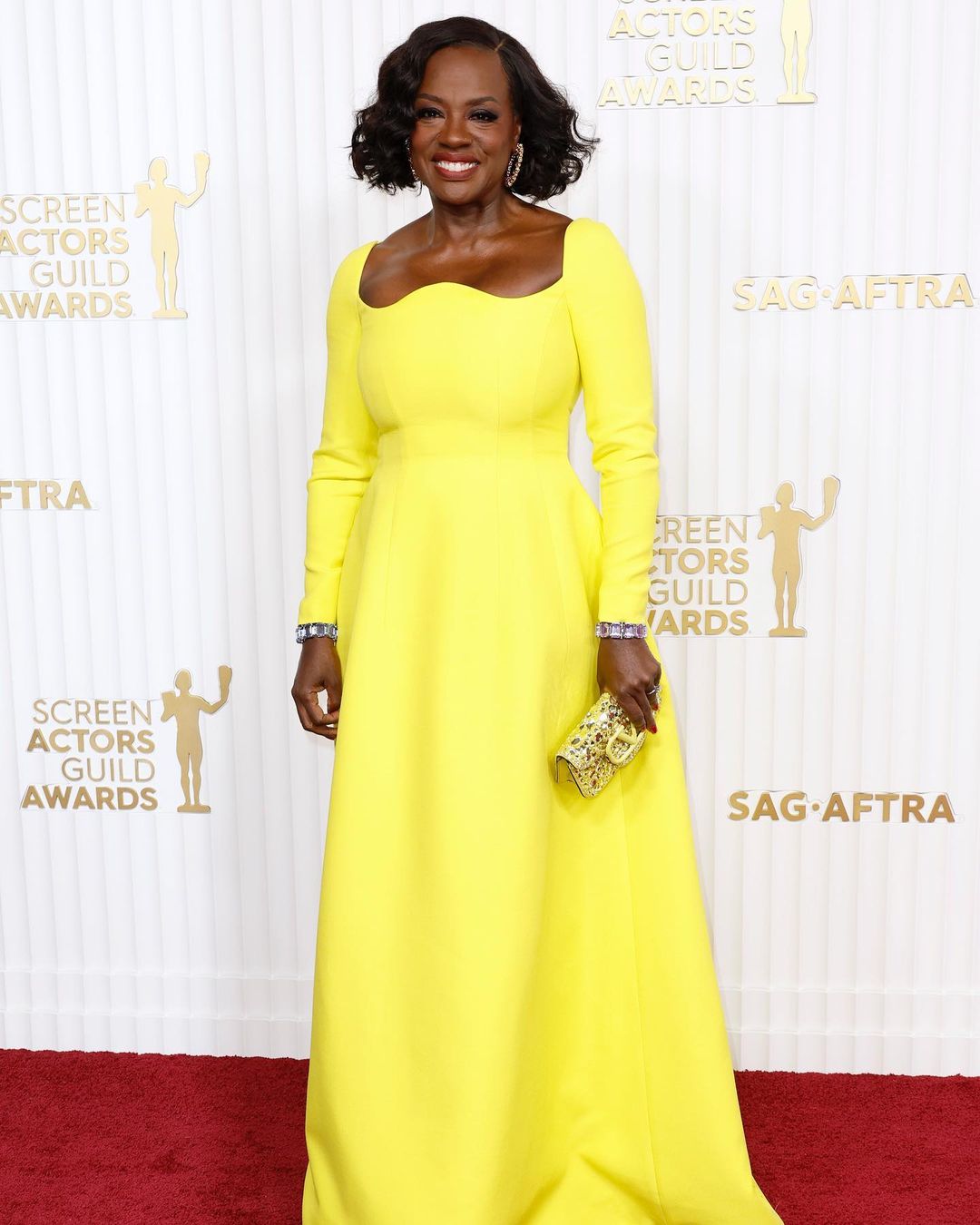Viola Davis looked astounding in a yellow full-sleeved gown by Maison Valentino