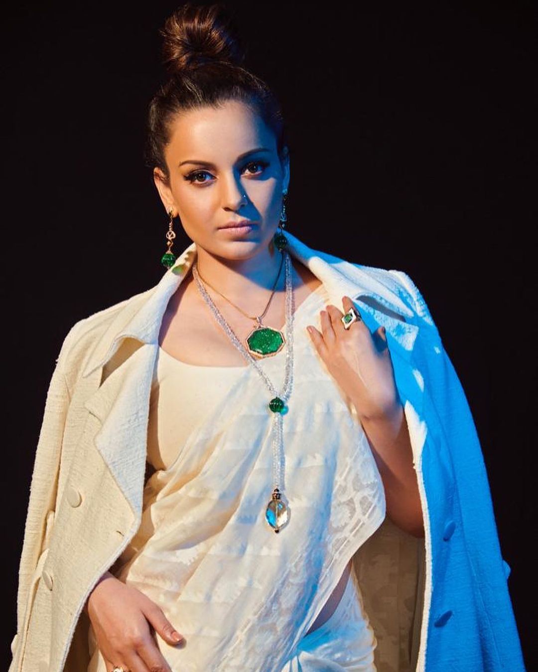 Kangana Ranaut pairs her white khadi saree with a matching jacket