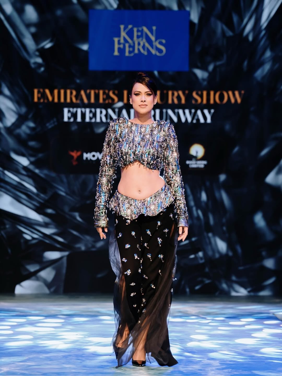 Nia walked the ramp for designer Ken Ferns at the Emirates Luxury Show