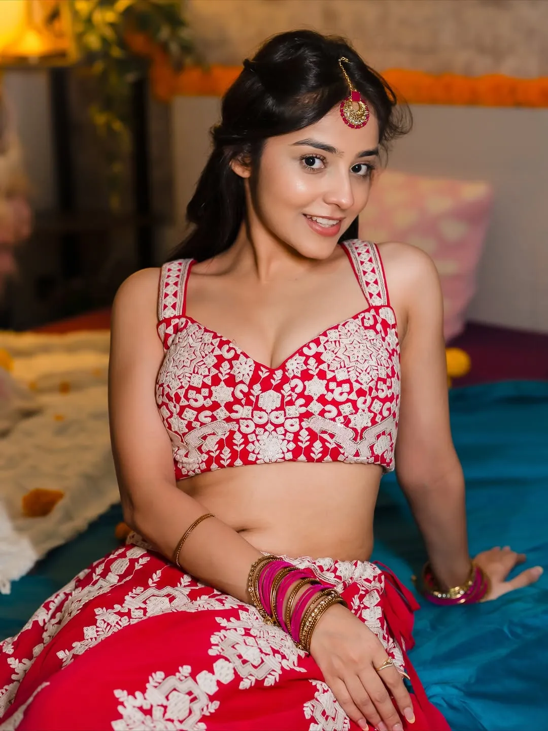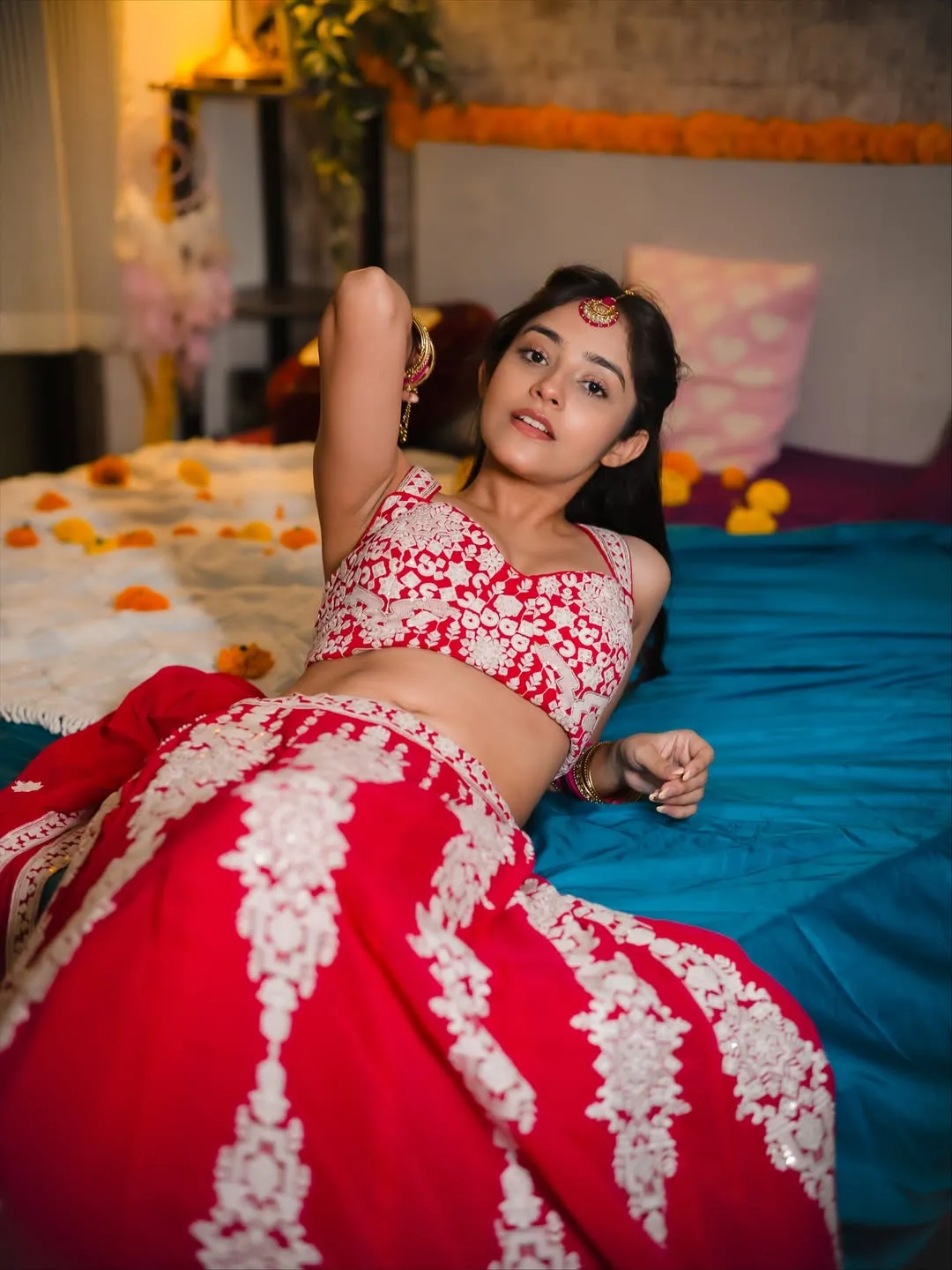 Draped in a vibrant red and white embroidered outfit, Riya looked every bit the modern-day diva with a cultural soul.
