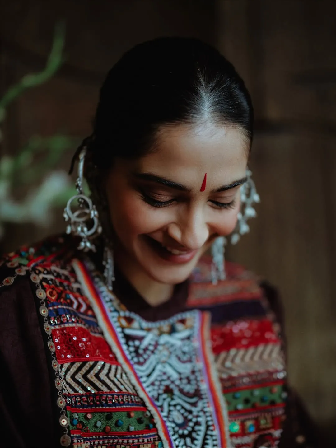 Every stitch in Riya’s attire spoke of refined craftsmanship. The detailed embroidery across the blouse and hemline added depth to the ensemble, making it a true visual delight.