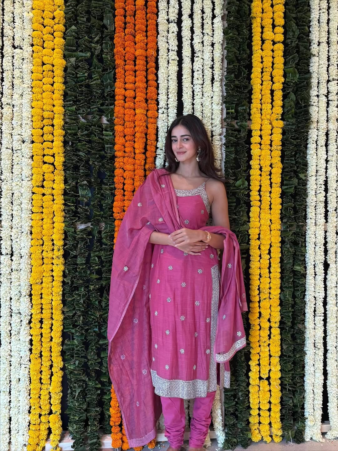 Ananya Panday: The young actor kept it simple in a sleeveless vintage pink suit from her mother's collection