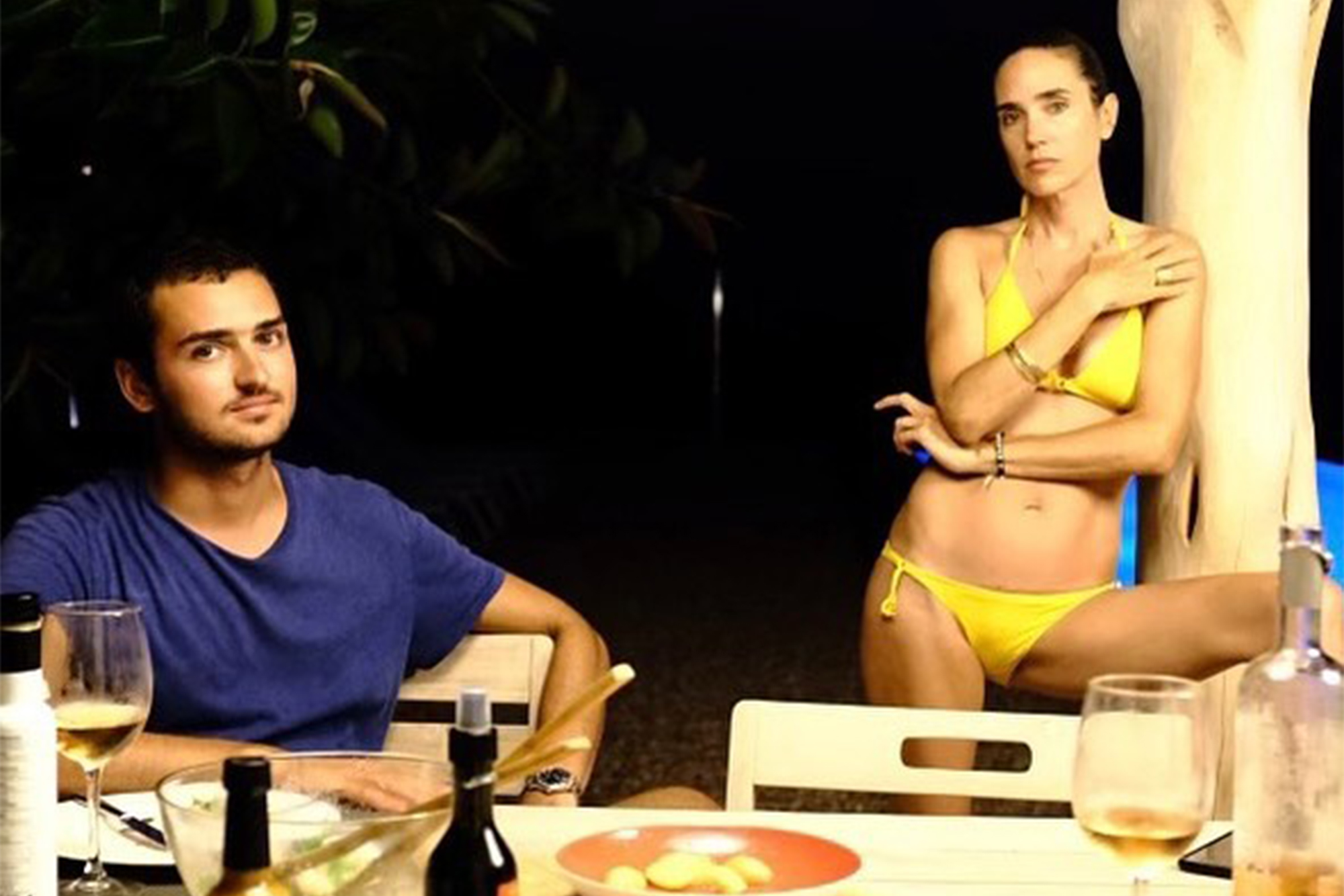WHY SO SERIOUS? Jennifer Connelly continues her summer of fun with son Kai, 25, at an undisclosed tropical locale