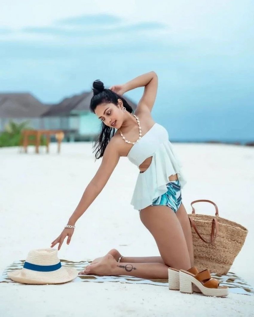 Kayadu Lohar Chilling in Blue Bikini Beside Beach