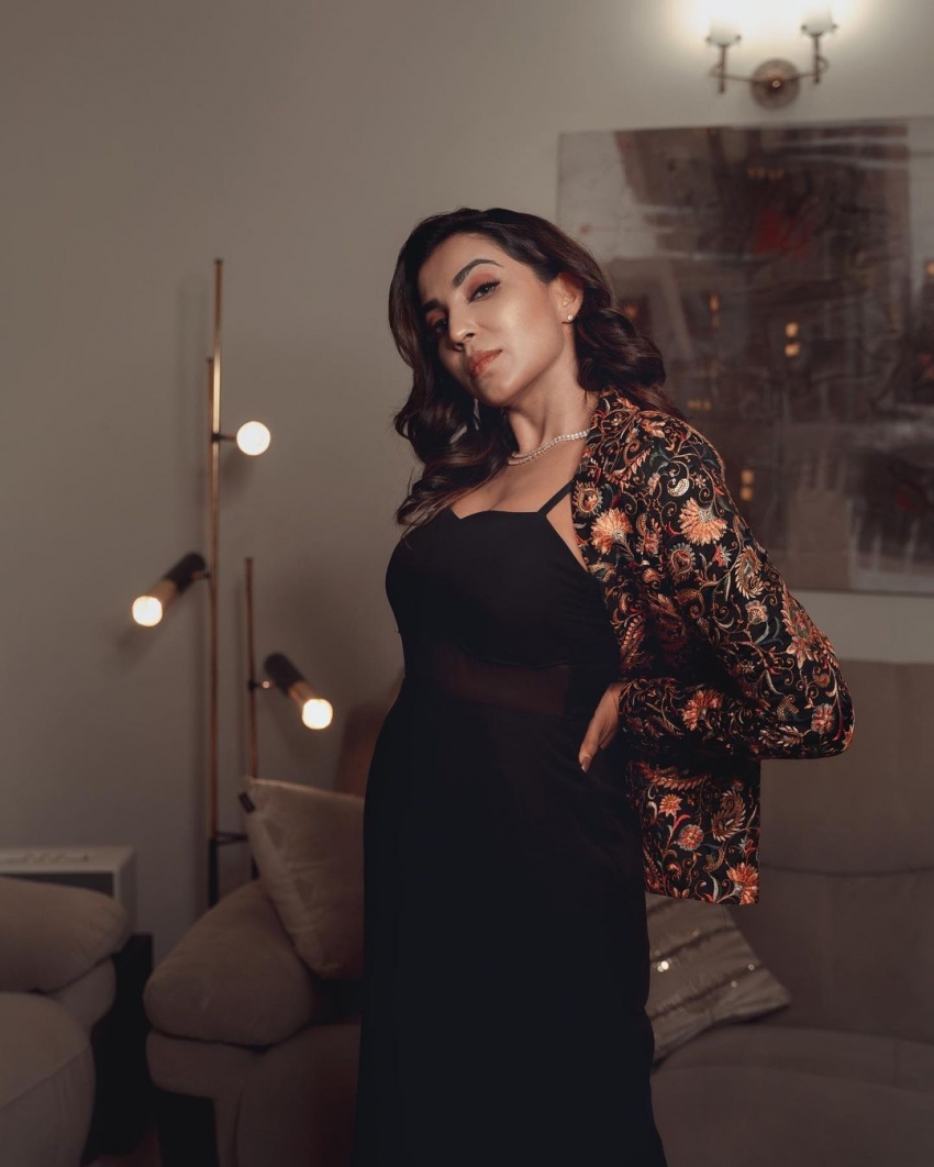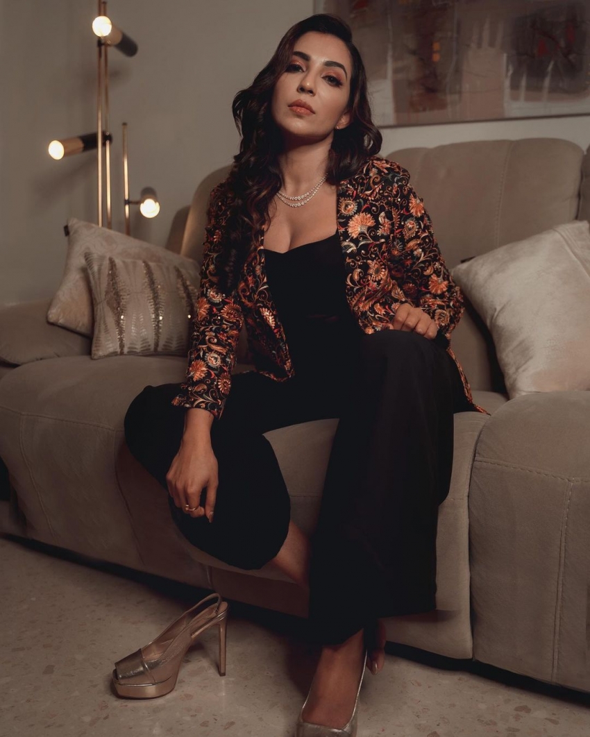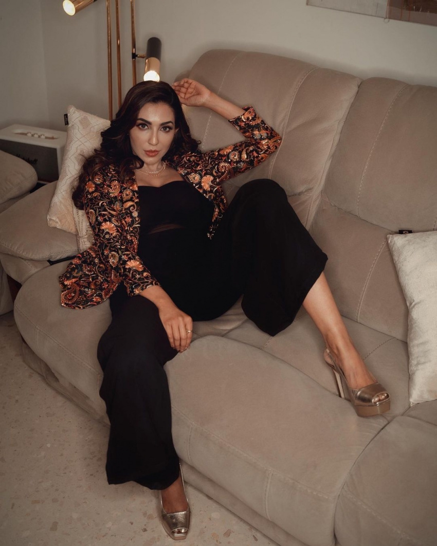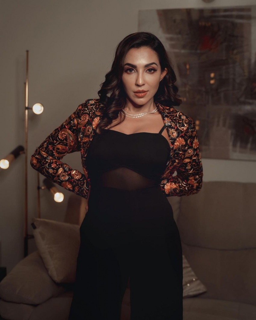 Latest Photoshoot of Neha Malik in Black Deep Neck Top