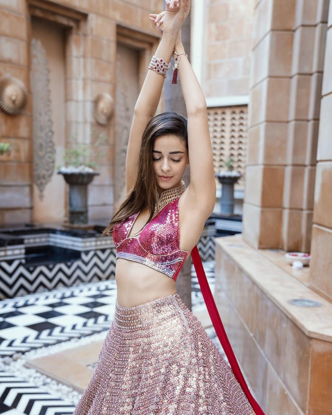 • Ananya Panday's embellished pink lehenga is pretty and vibrant.