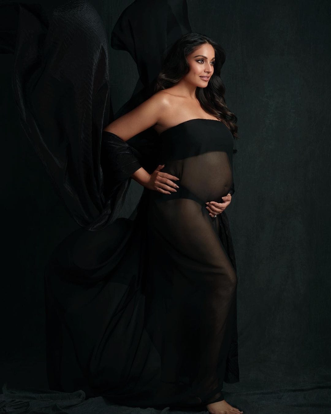 Bipasha Basu looks radiant as she flaunts her baby bump in a black sheer dress