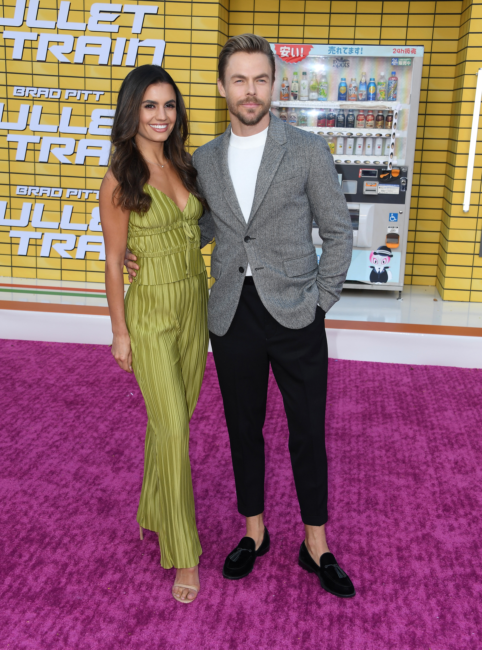 Hayley Erbert and Derek Hough on the "Bullet Train" LA premiere red carpet.