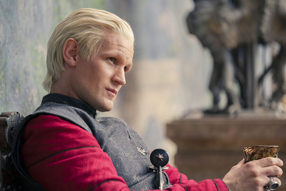 Matt Smith and Emma D’Arcy play Prince Daemon and Princess Rhaenyra. They end up marrying each other, even though Daemon is Rhaenyra’s uncle.