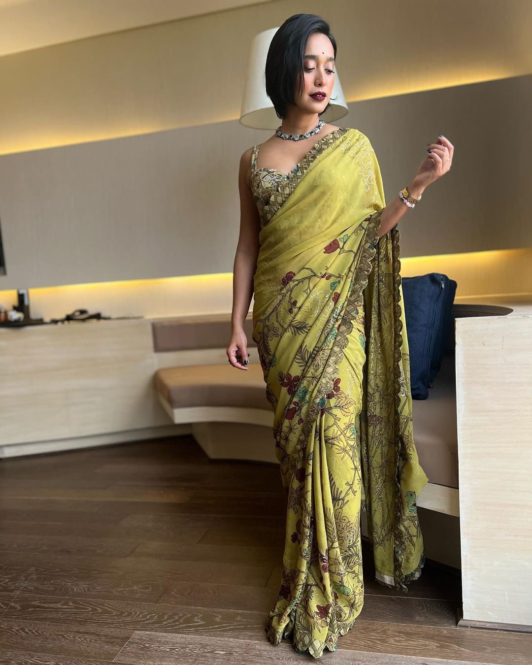 Sayani Gupta looks elegant in the green floral printed saree