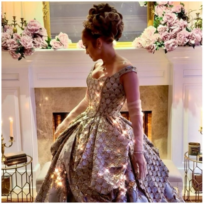 Jennifer Lopez sparkled in those crystals, floral intricacies exuding the perfect Bridgerton vibe!