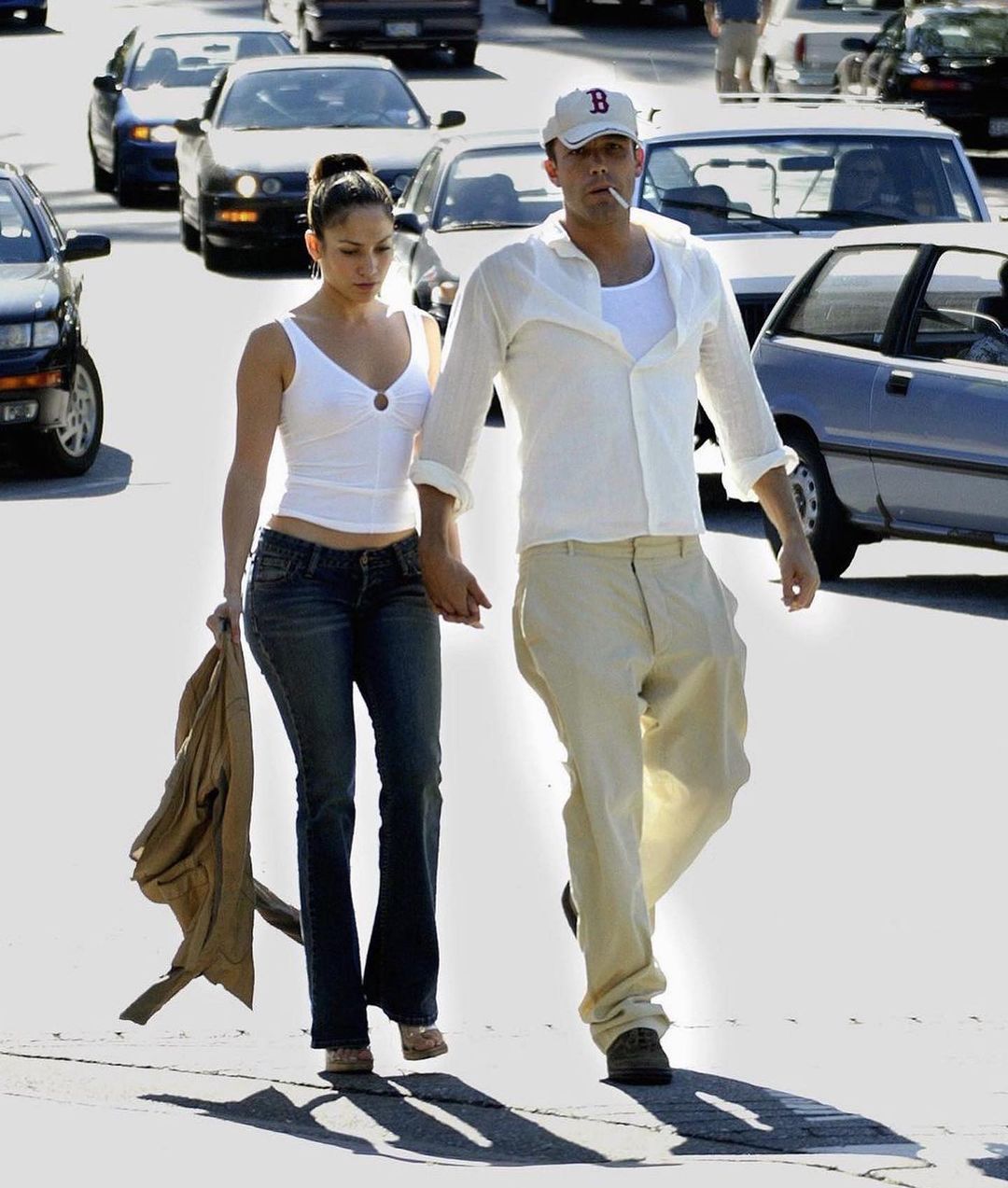 Jennifer Lopez and Ben Affleck walking hand in hand