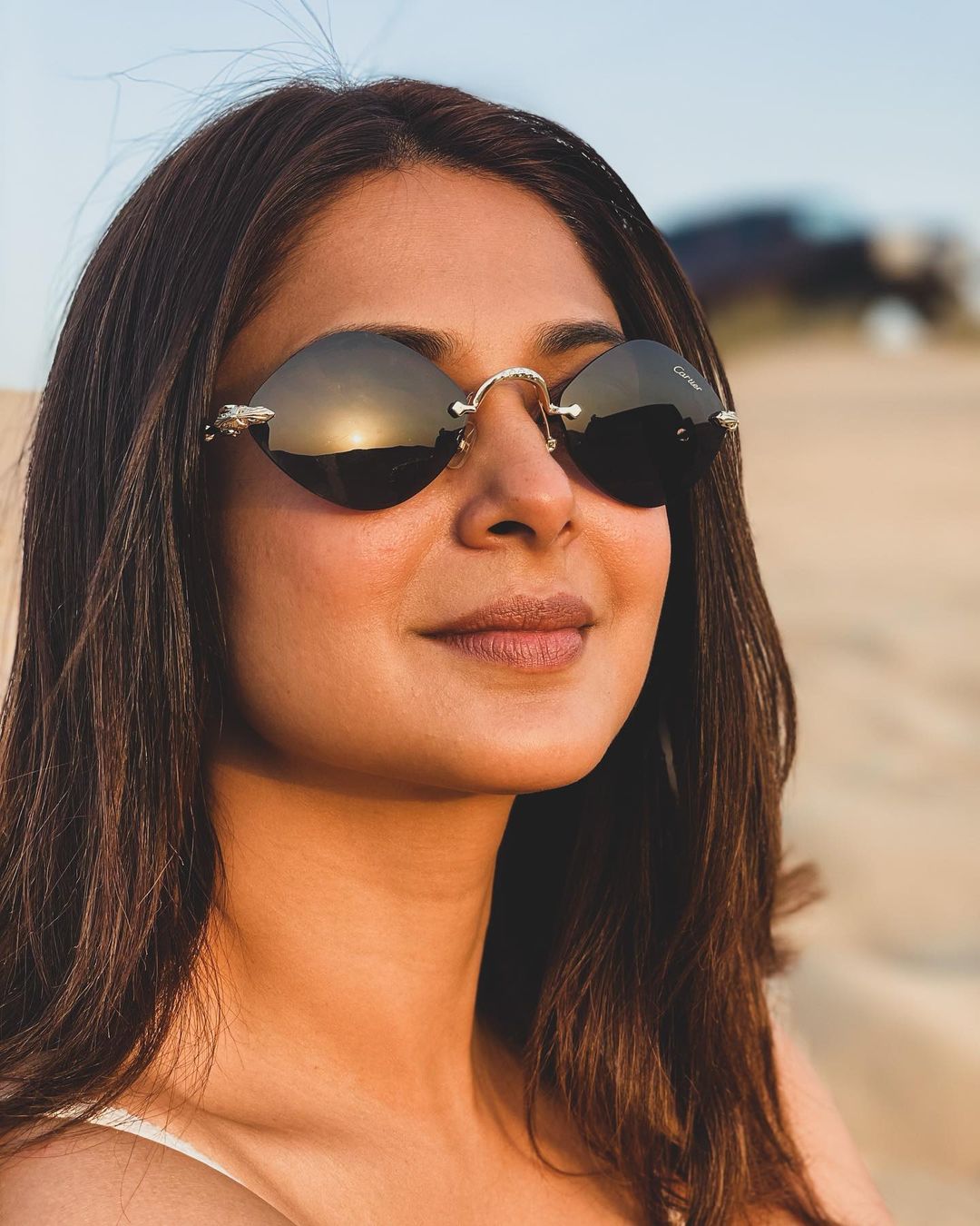 Jennifer Winget looks sexy in a white tank top as the chills at the desert
