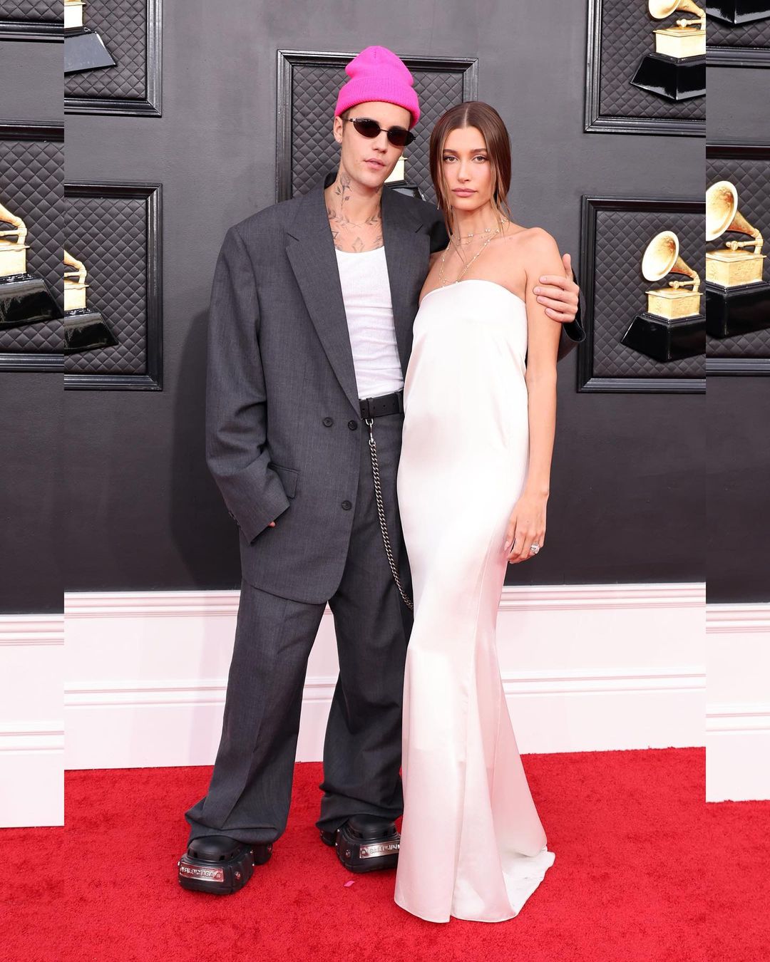 Justin Bieber kept it stylish in an oversized Balenciaga suit while his wife Hailey Bieber looked sexy in the off-shoulder white dress by YSL.