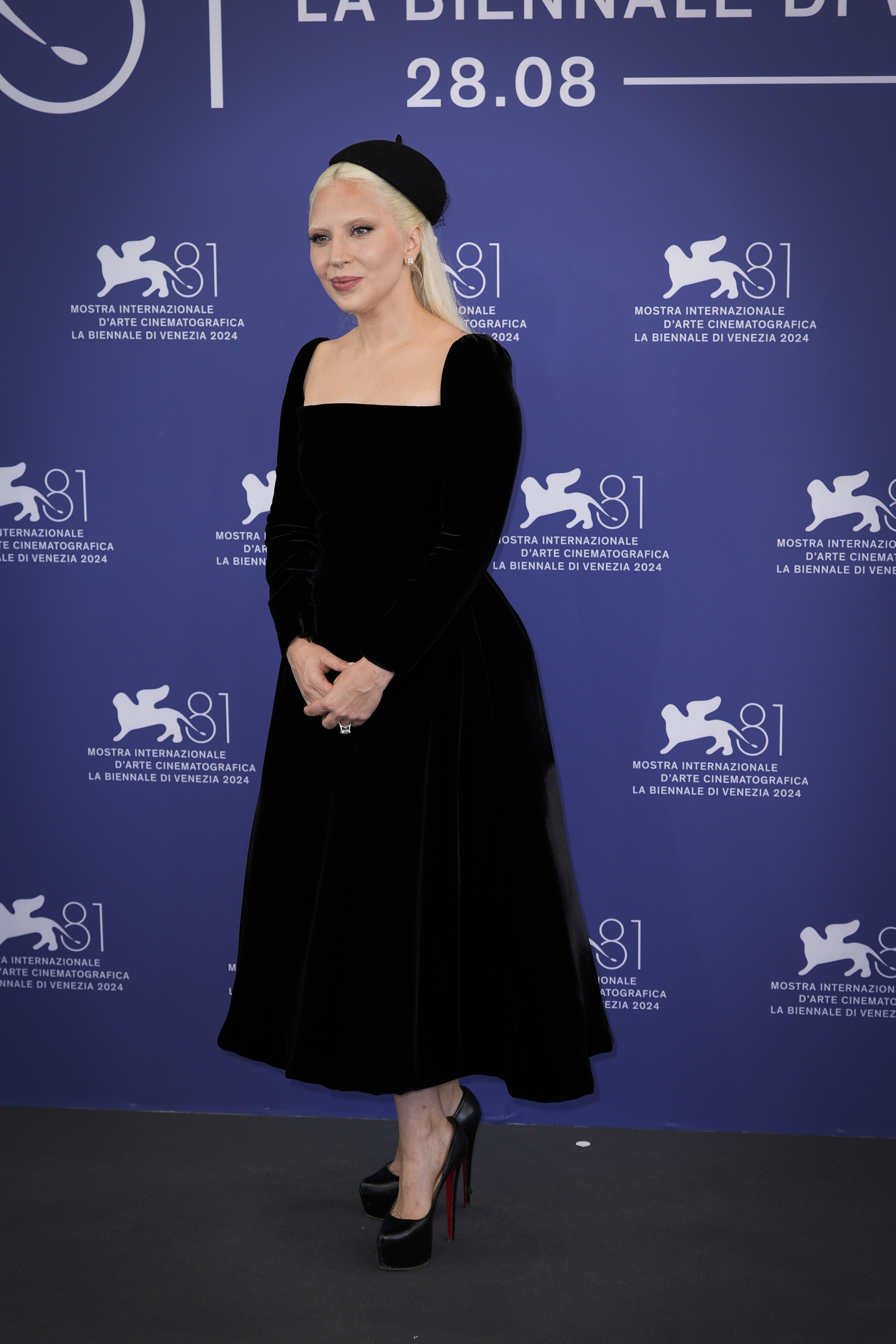 Lady Gaga wears Dior Haute Couture at the “Joker: Folie à Deux” photocall during the Venice Film Festival 2024
