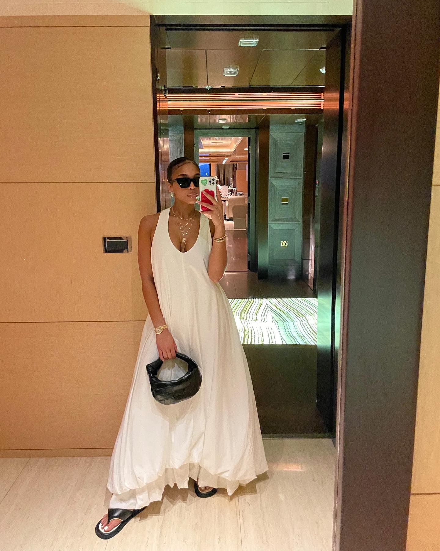 Lori Harvey Declares It's "Euro Summer" in a Chill White T-Shirt Dress