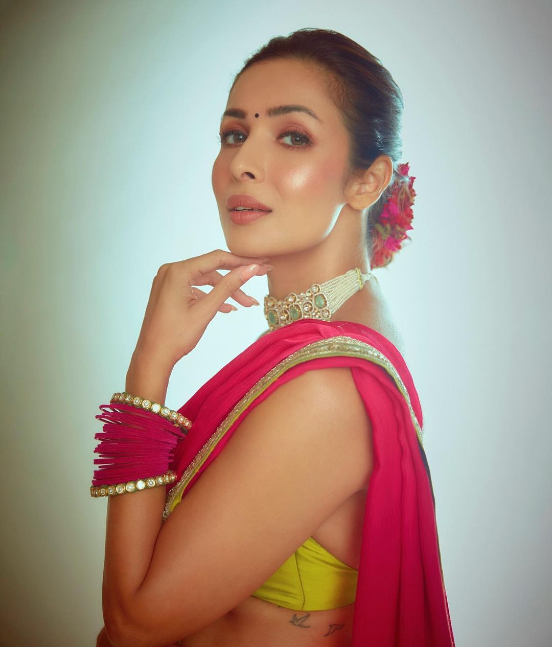 Malaika Arora slays the beautiful pink and green saree by ace-designer Manish Malhotra