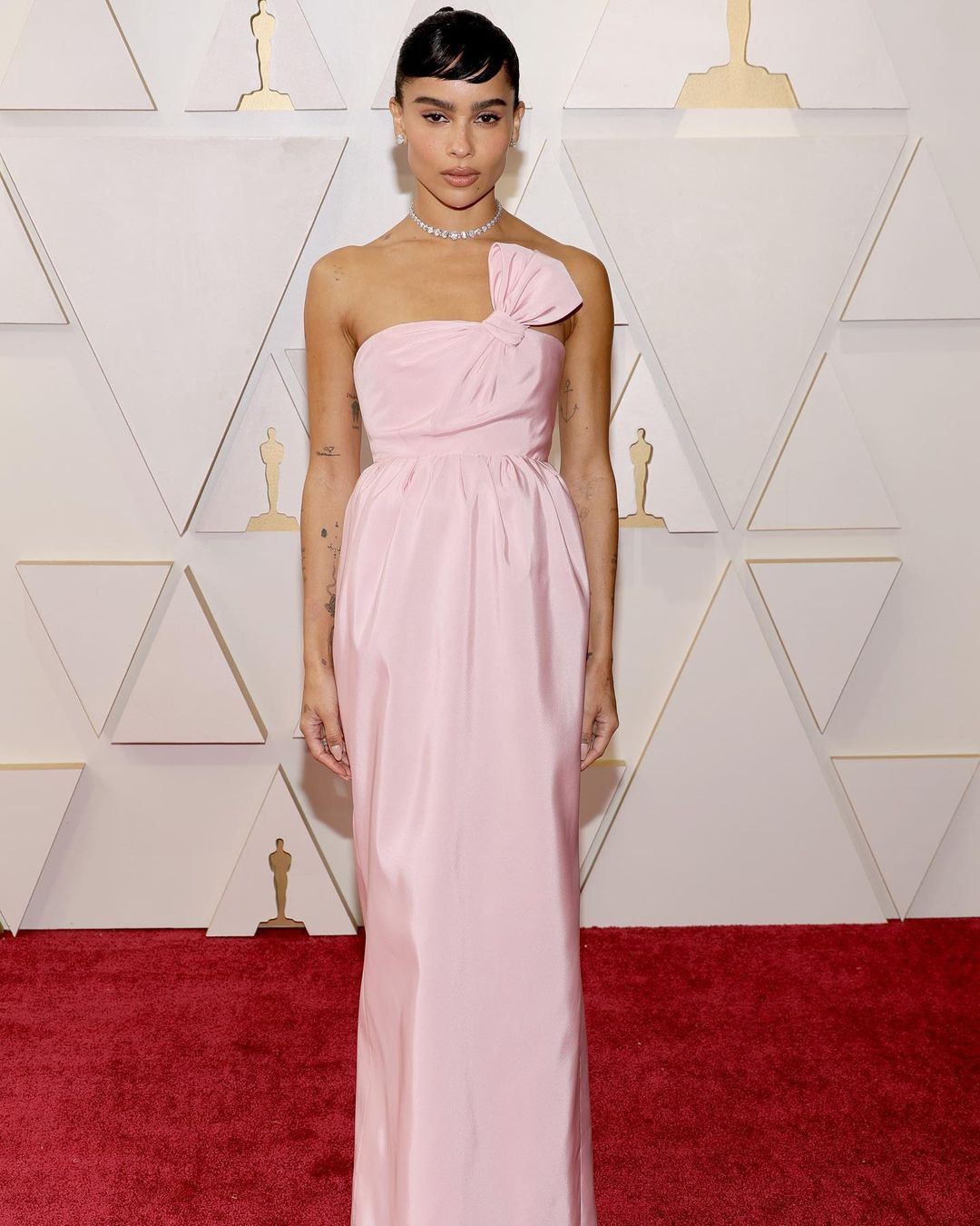 Zoe Kravitz looks pretty in the pale pink gow by YSL