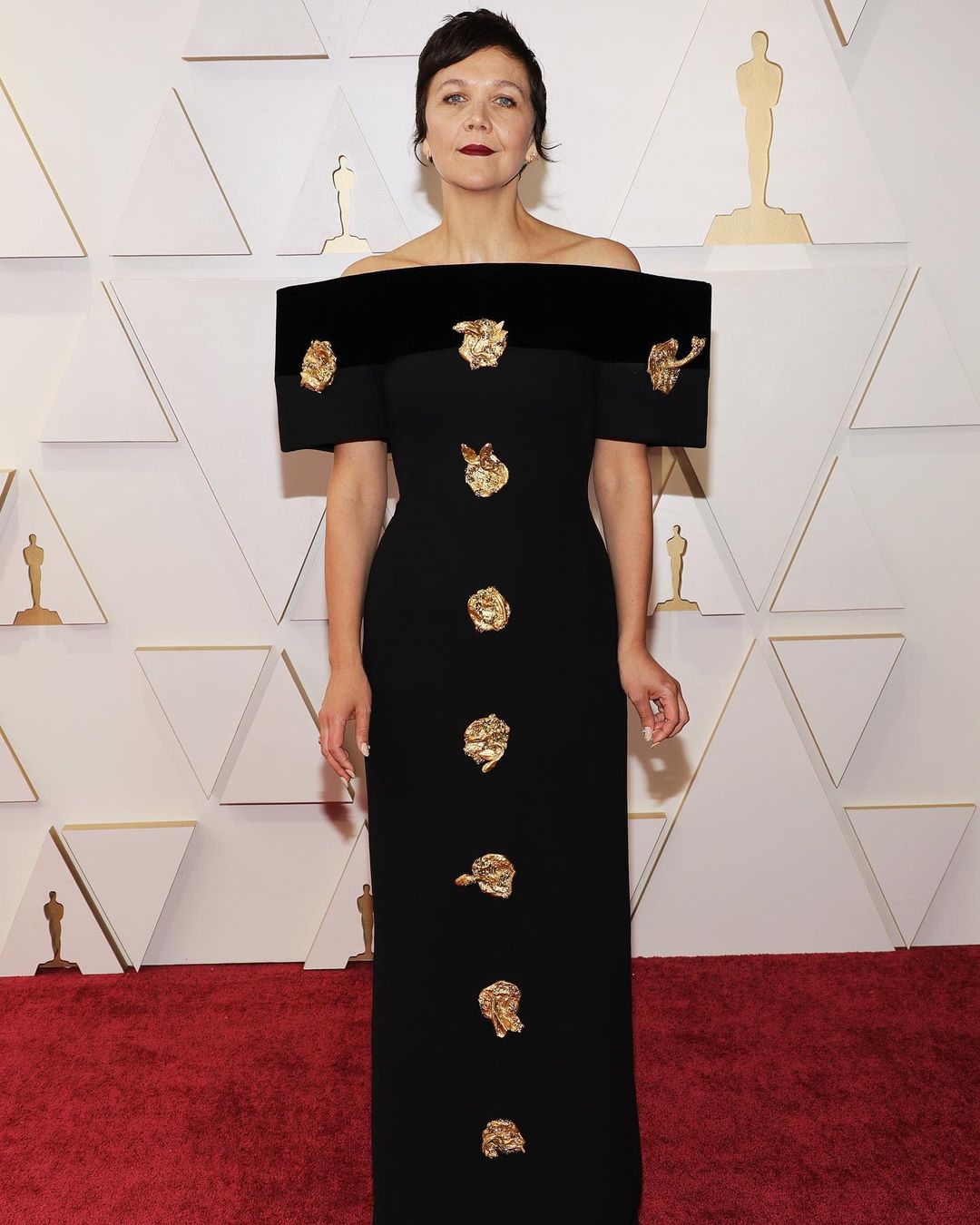Maggie Gyllenhaal makes a dramatic statement in a Schiaparelli gown