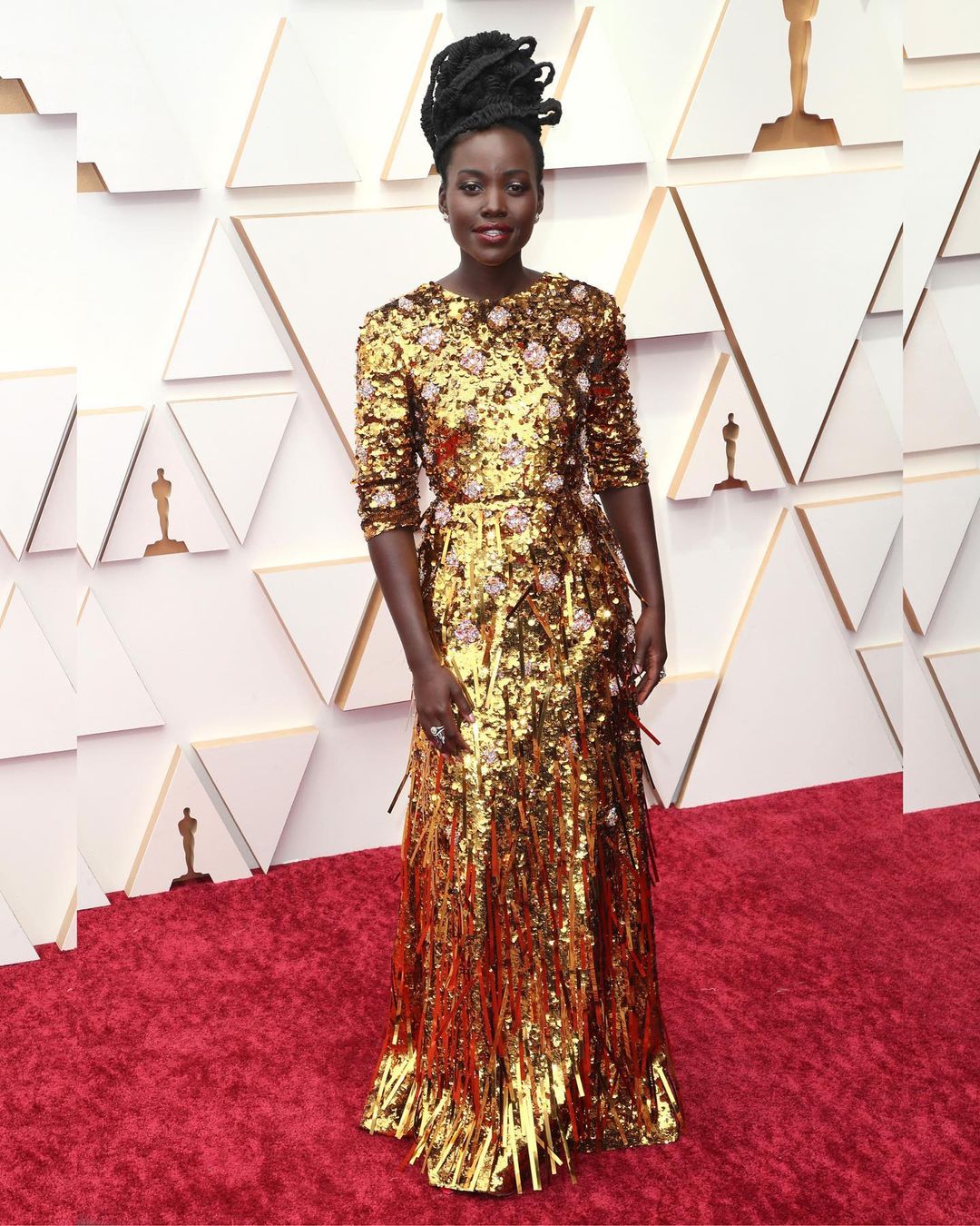 Lupita Nyong'o sparkles in a golden Prada dress