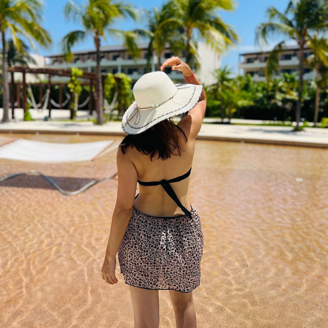 Sonalee looks hot and chic in this backless dress on her tropical vacation with her husband Kunal Benodekar