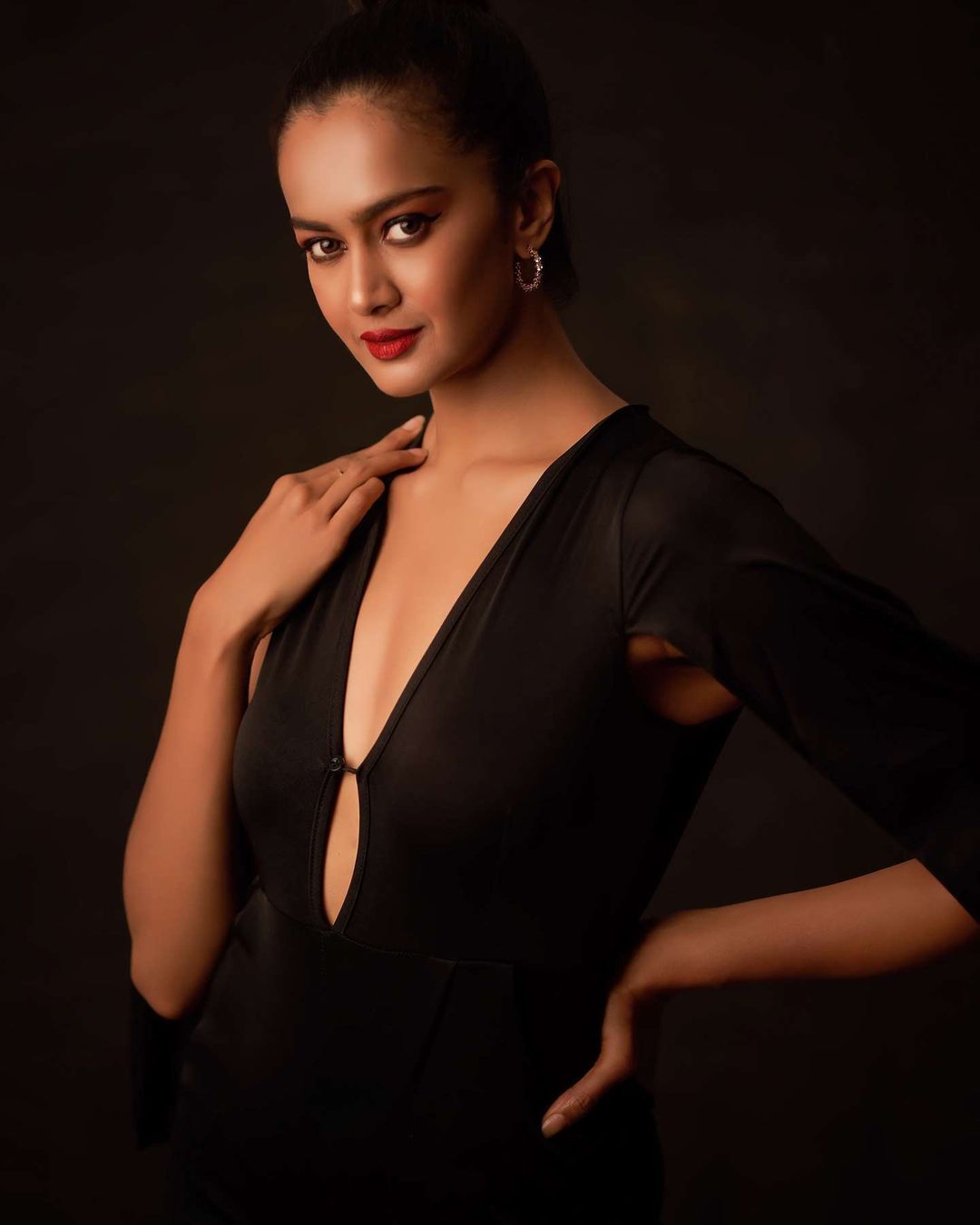 Amyra Dastur looks sexy in the dress with a plunging neckline