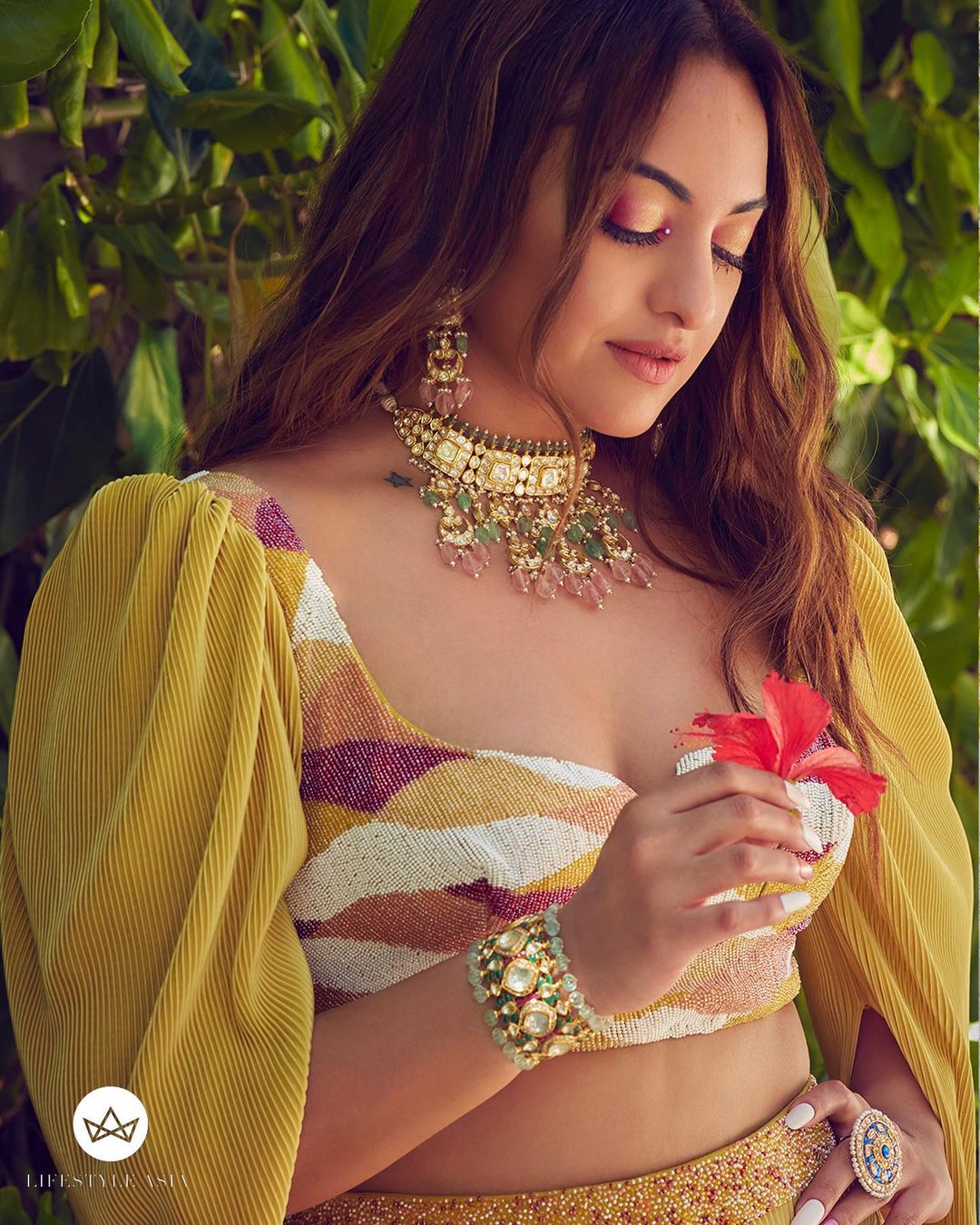 • Sonakshi Sinha looks regal in the multicoloured choli