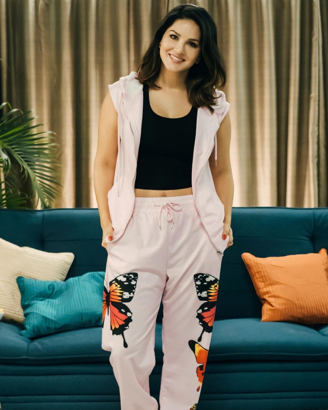 Sunny Leone gives a peek into her bralette through her top
