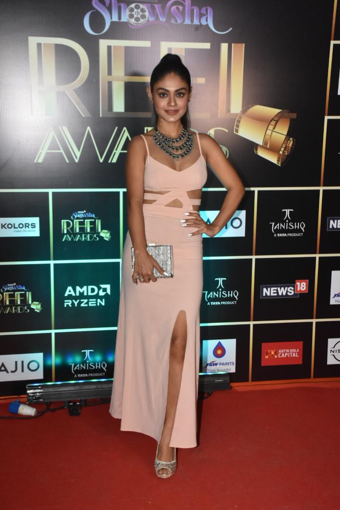 • Sreejita De in nude cutout dress at the News18 Showsha Reel Awards 2023