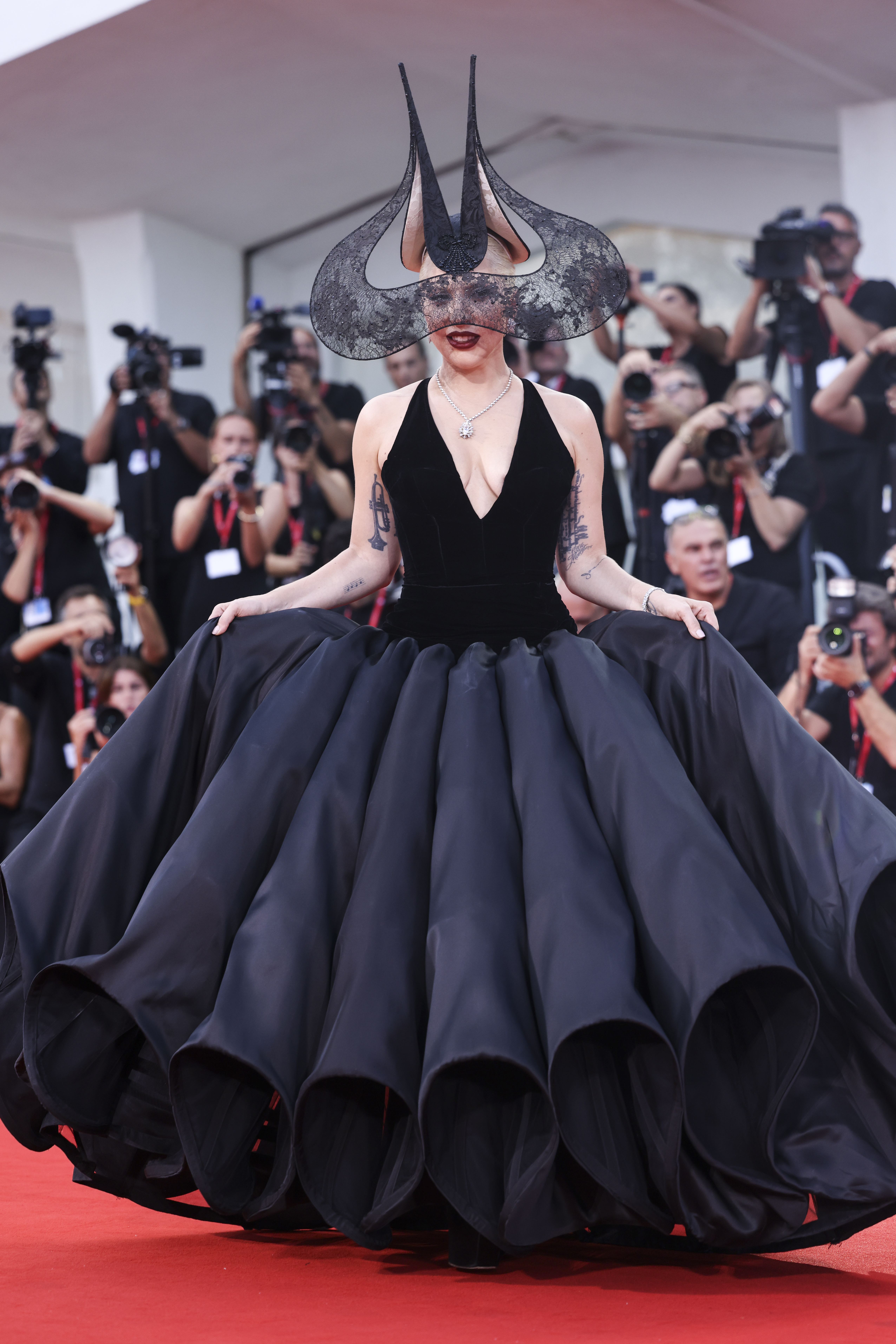 Lady Gaga wears Dior Haute Couture at the “Joker: Folie à Deux” premiere during the Venice Film Festival 2024.