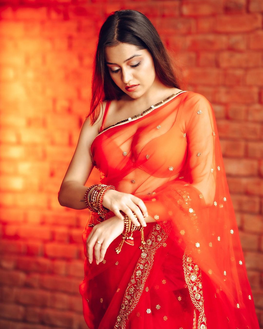 #Riya Verma Aka Bachu Dazzles in Red and White Embroidered Ensemble for Diwali