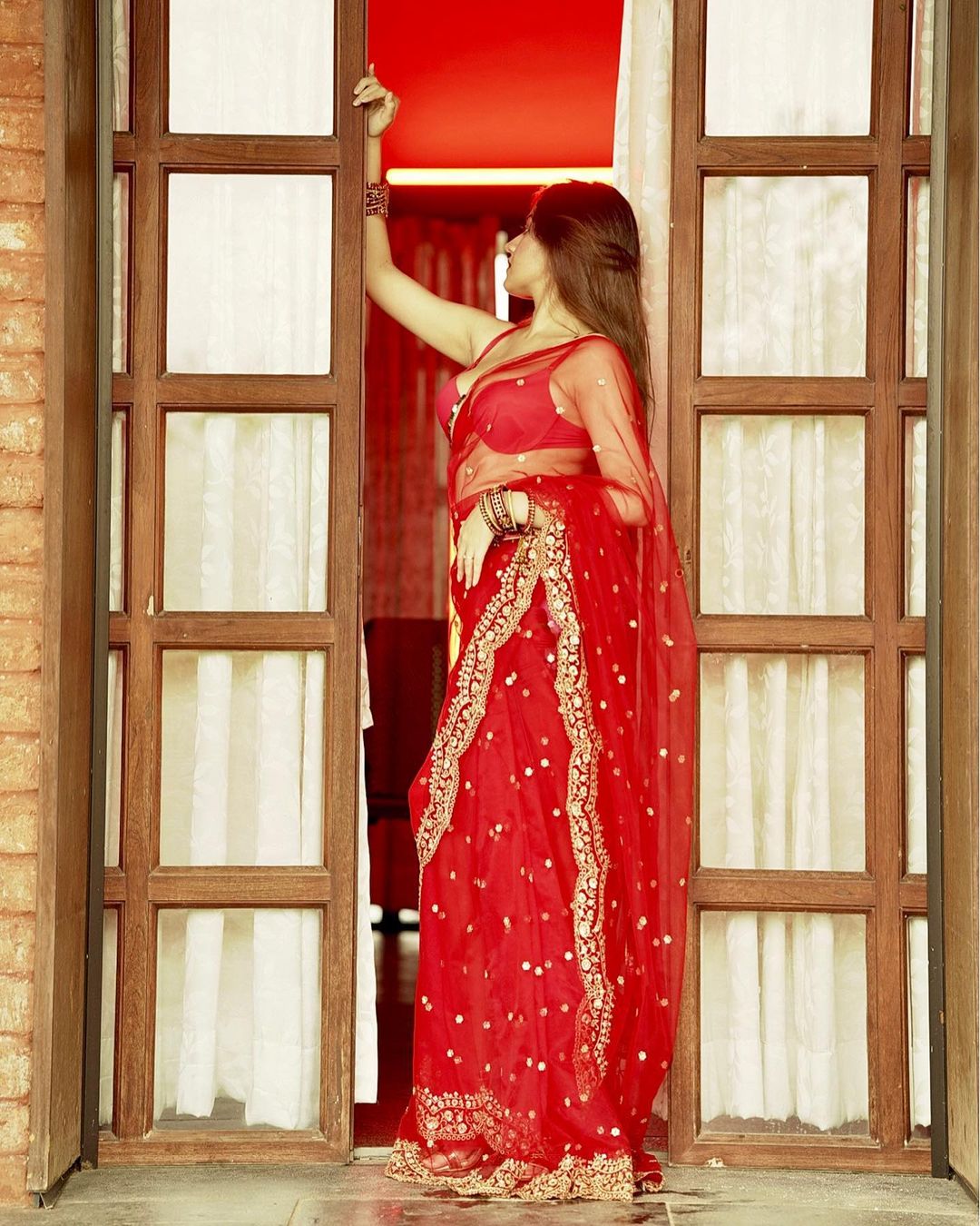 #riya verma aka bachu dazzles in red and white embroidered ensemble for diwali