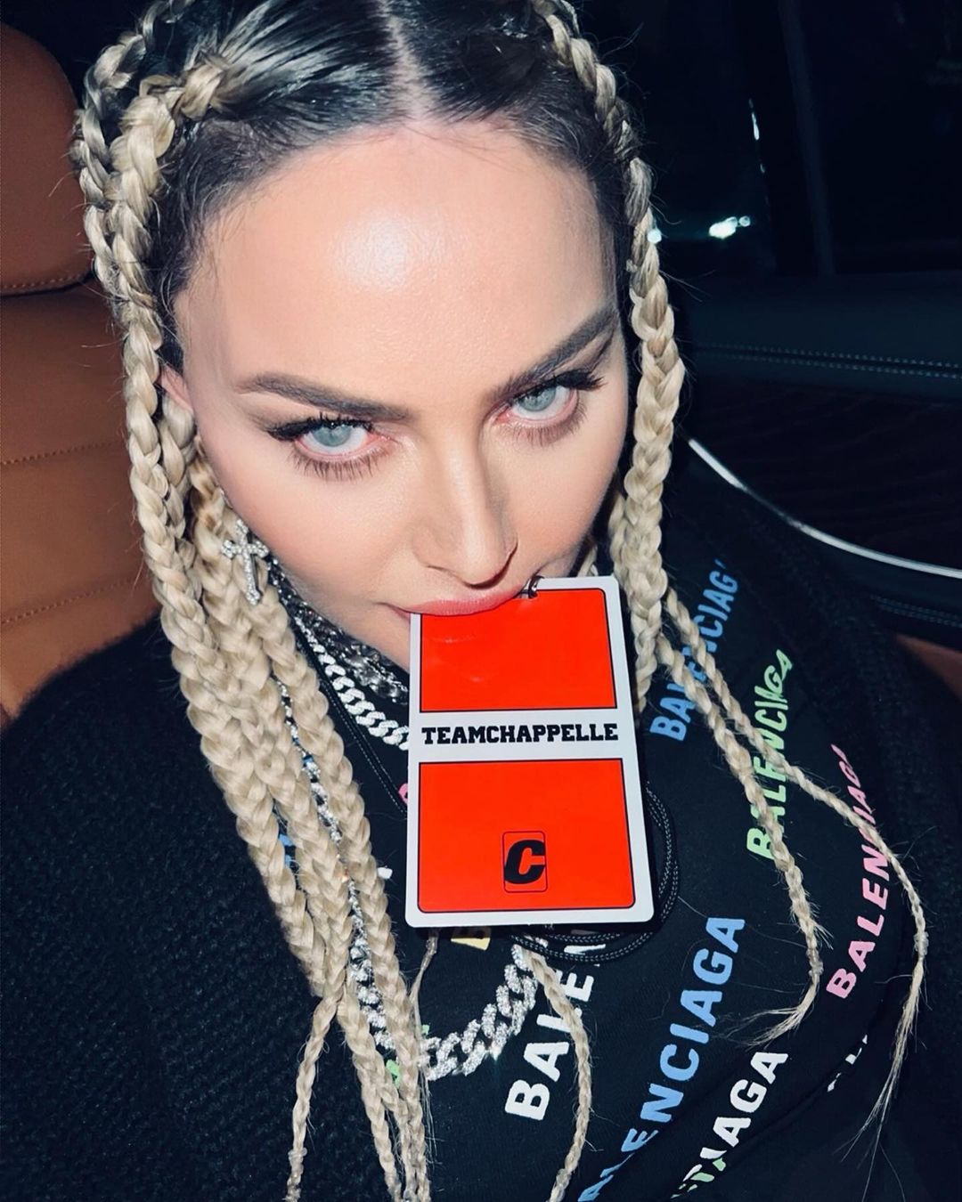 Madonna can be seen in braided blonde hair and a black Balenciaga sweatshirt. She captioned it, “Last Night was Strange, and disturbing for so many reasons! #madonna #1080x1350 File type: jpg Original size: 1080x1350 Download