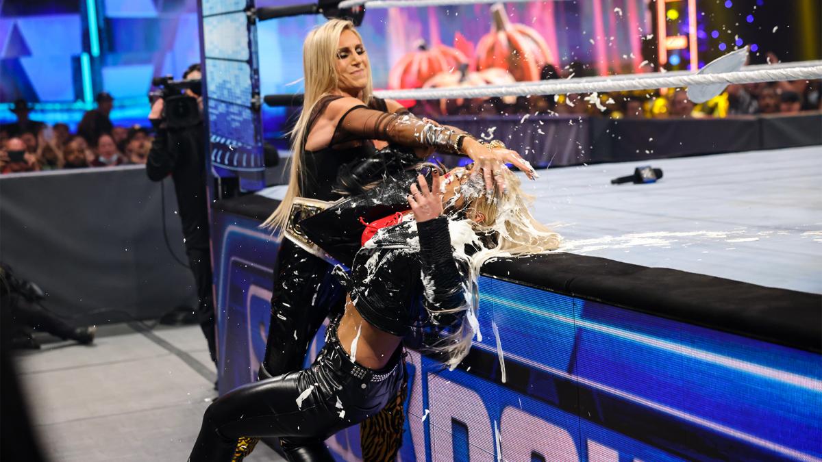 Charlotte Flair hit Toni Storm with a two pies to the face